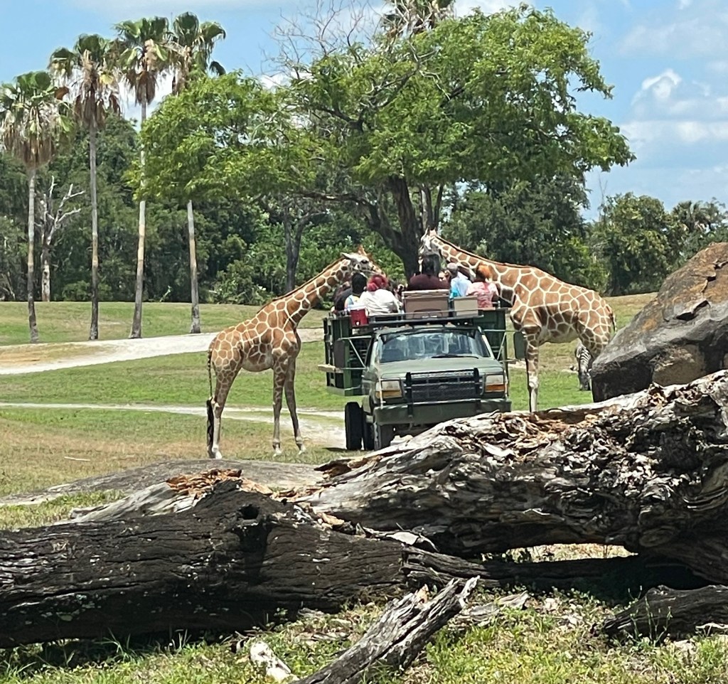 Once little bit woke up we got food and chilled out for a while I must say the food was pretty good too. 👍🏾 After food we all got a chance to enjoy a train ride around the entire park. The train went through a safari type area that had giraffes, zebras, wildebeest, rhinos, gazelle, and ostriches. The animals were literally hanging out eating grass out in a huge open savanna looking area as we rode by. Tours through the area in an open back truck to feed the giraffes was also available but with our little one we decided to just do the train but it definitely looked fun. The train ride was very nice. We choo chooed around and through the the entire park. 🚂 My oldest and youngest were both excited but the sweetest thing to see was the youngest pointing at the animals that we normally see on tv or on a flashcard and with excitement yell out what they were. ☺️🦓🦒