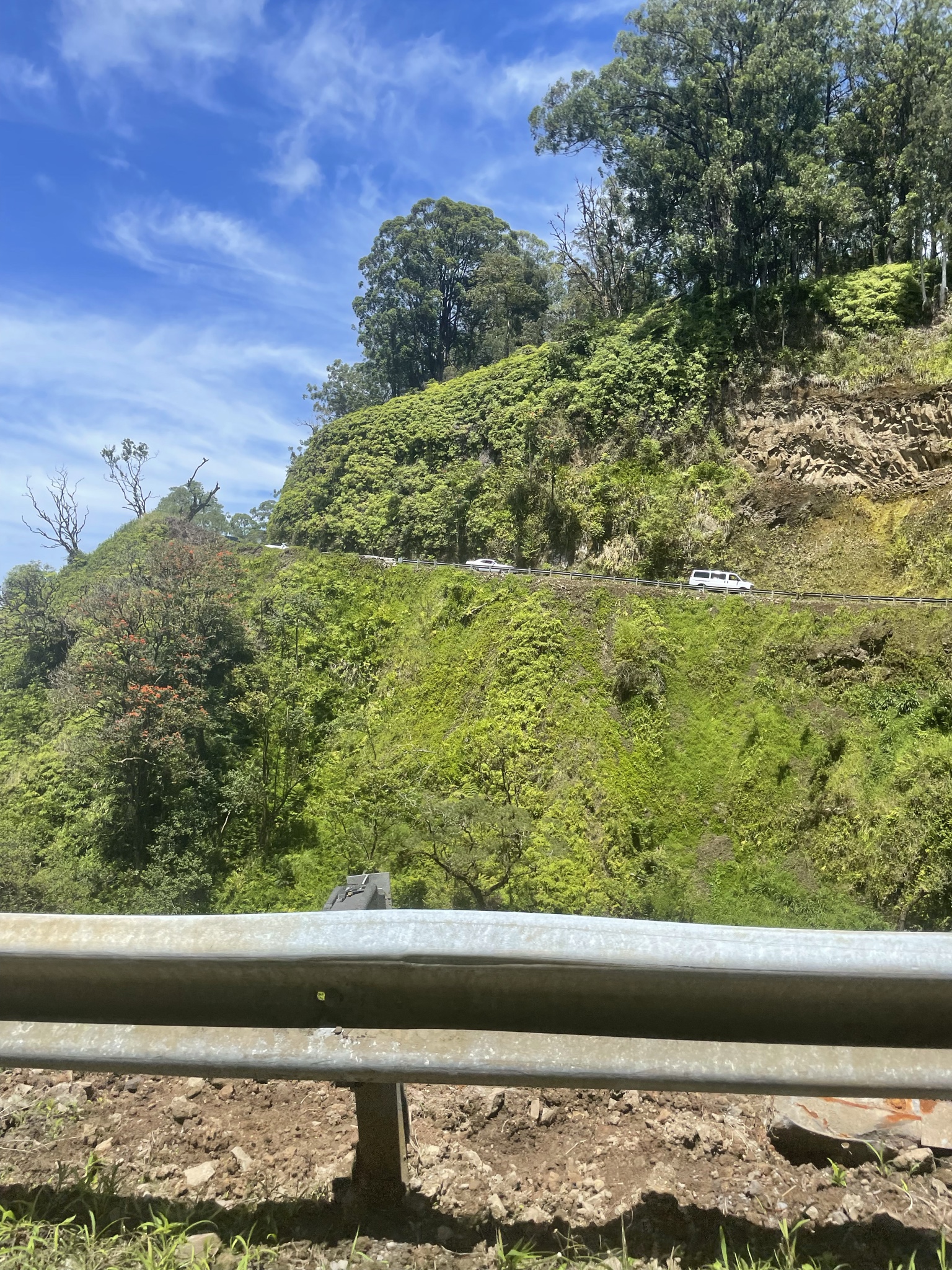 This was my favorite day! On day 3 we decided to drive “The Road to Hana” . If you go to Maui you should try to plan a dat just for this. This trip is about 64 miles of scenic views, small roads, one lane bridges, and places throughout the stretch where you can stop to eat or take pics. It took us about 3-3.5hrs to complete and that’s not including the stops we made along the way. One thing I can say is be prepared to drive or ride the crazy curves, twists, and turns. We literally had a curve the shape of a U 😳… talking about being on edge! 😂Not only that, you’re also going up a mountain as you drive. You’ll see cars…mostly Jeeps and drop tops pulled over on the sides of the road where there is extra space to squeeze and park. Everyone will be parking so they can walk to a view like a waterfall, creeks, the ocean, anything beautiful.