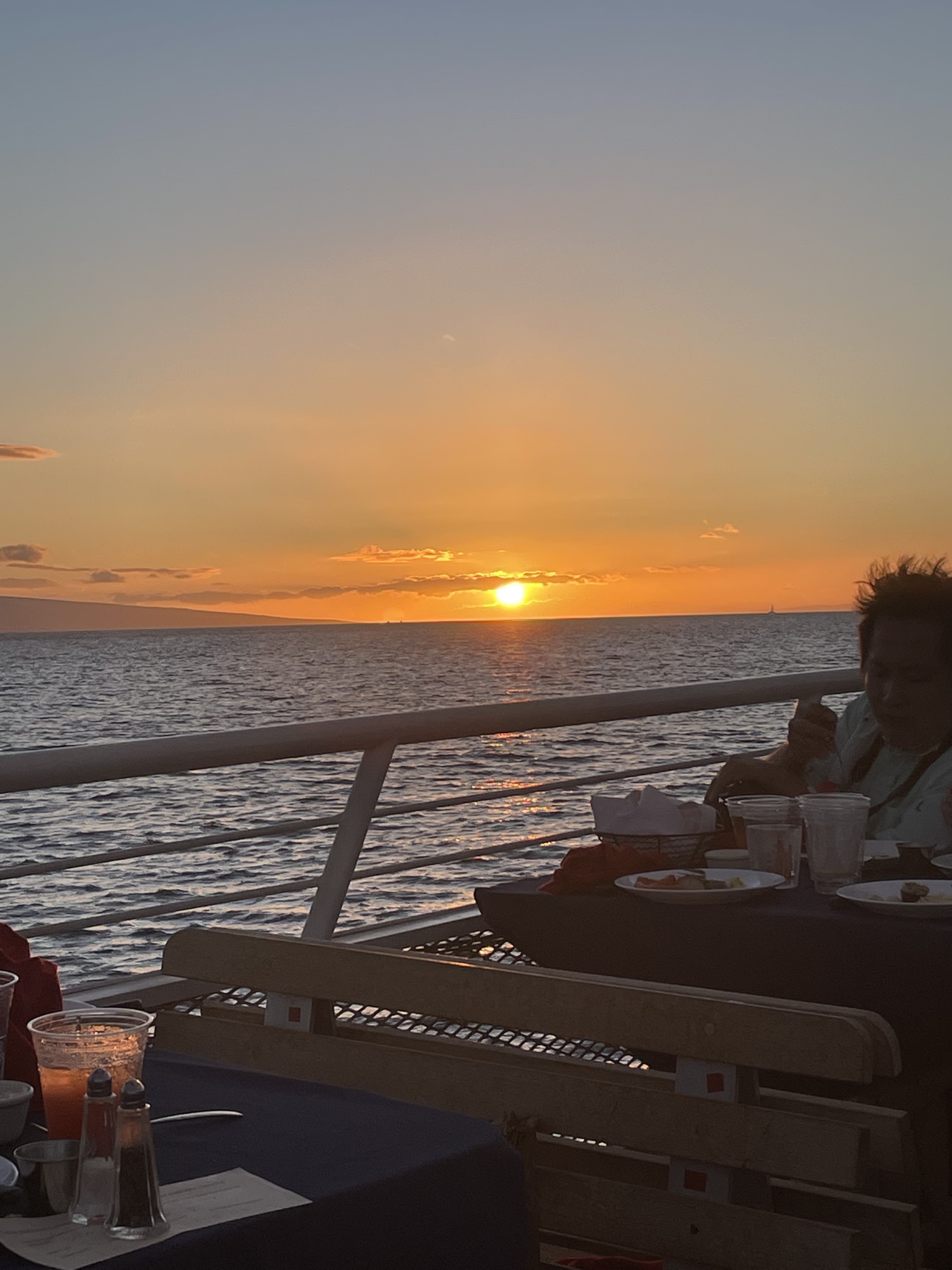 Day 4 was definitely a laid back, relax, go buy souvenirs type of day. We ended up going back to Lahaina Front Street which is by the Lahaina bay. This area has the cutest shops, restaurants, and the ocean is right there as well! We ate, I got shaved ice from Breakwall Shave Ice Company…OMG delicious! They do adult shave ice, regular, and or you can add a scoop of ice cream at the bottom of your ice. I got a regular with a scoop of ice cream🍨. It was well worth it! We shopped for family souvenirs, searched for a Hawaiian 🌺 brand chocolate that we eventually found 🙌🏾 and later that evening took a sunset cruise